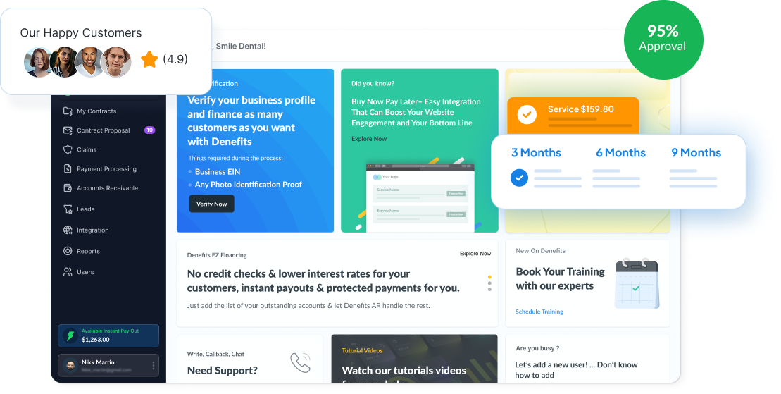 Denefits automates payment plan management, reminders, and reporting, freeing your team’s valuable time to focus more on customer.