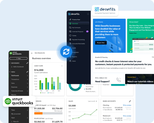 The integration with QuickBooks means no more juggling spreadsheets—your payment plans, customer transactions, and everything in between stay in sync, saving time and reducing manual efforts. Whether you're reconciling monthly reports or tracking payment activity, QuickBooks and Denefits work seamlessly to simplify finances and keep your books balanced. This means fewer headaches and more time to focus on growing your business.